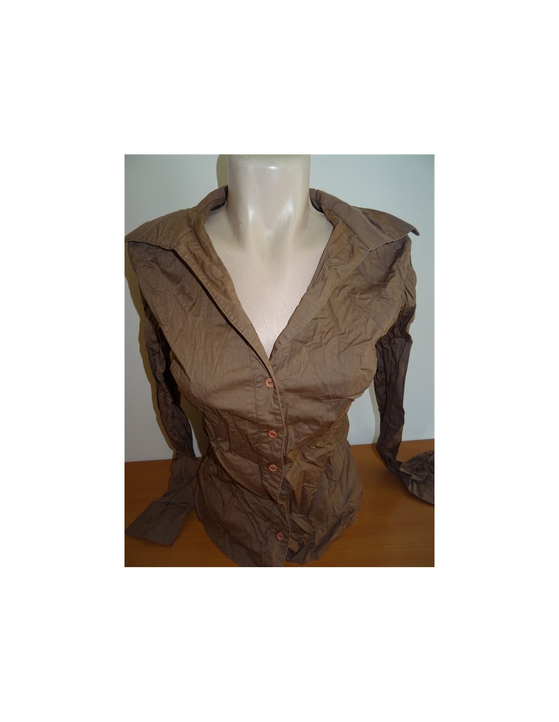 Camasa maro dama maneca lunga Storm model casual inchidere nasturi