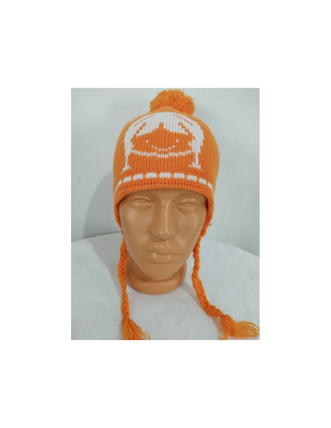Caciula tricotata fin portocalie cu mot si imprimeu fetita BoRuiDa potrivita pentru sezonul rece