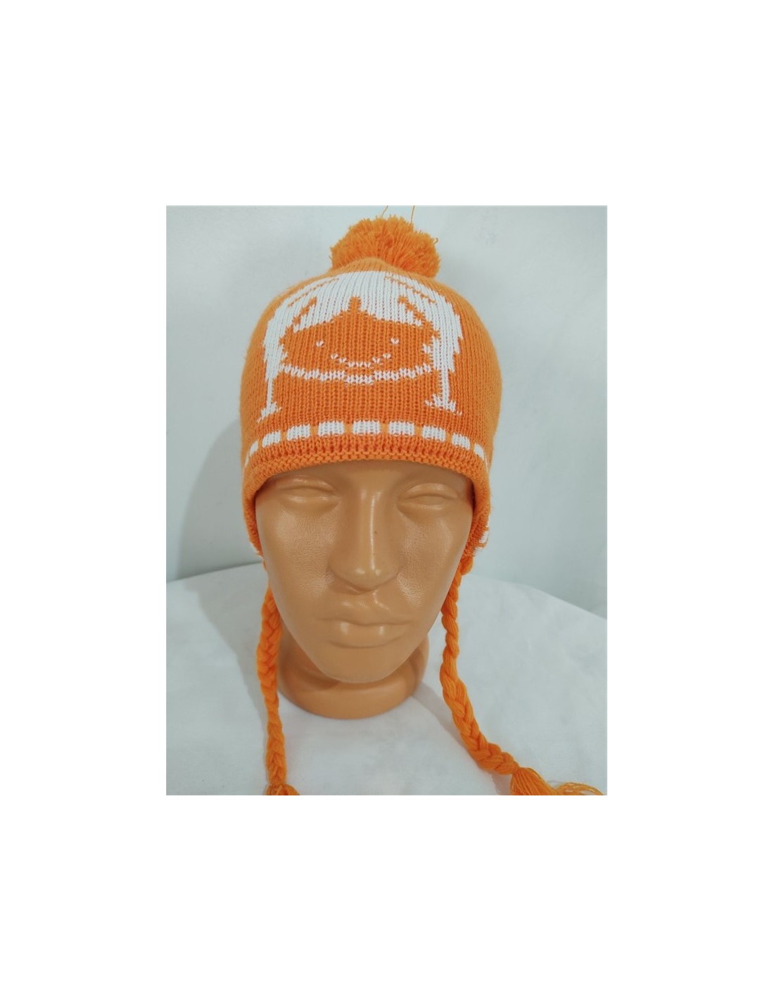 Caciula tricotata fin portocalie cu mot si imprimeu fetita BoRuiDa