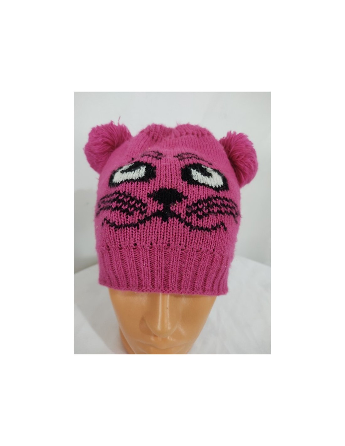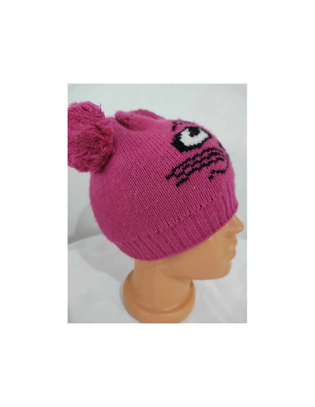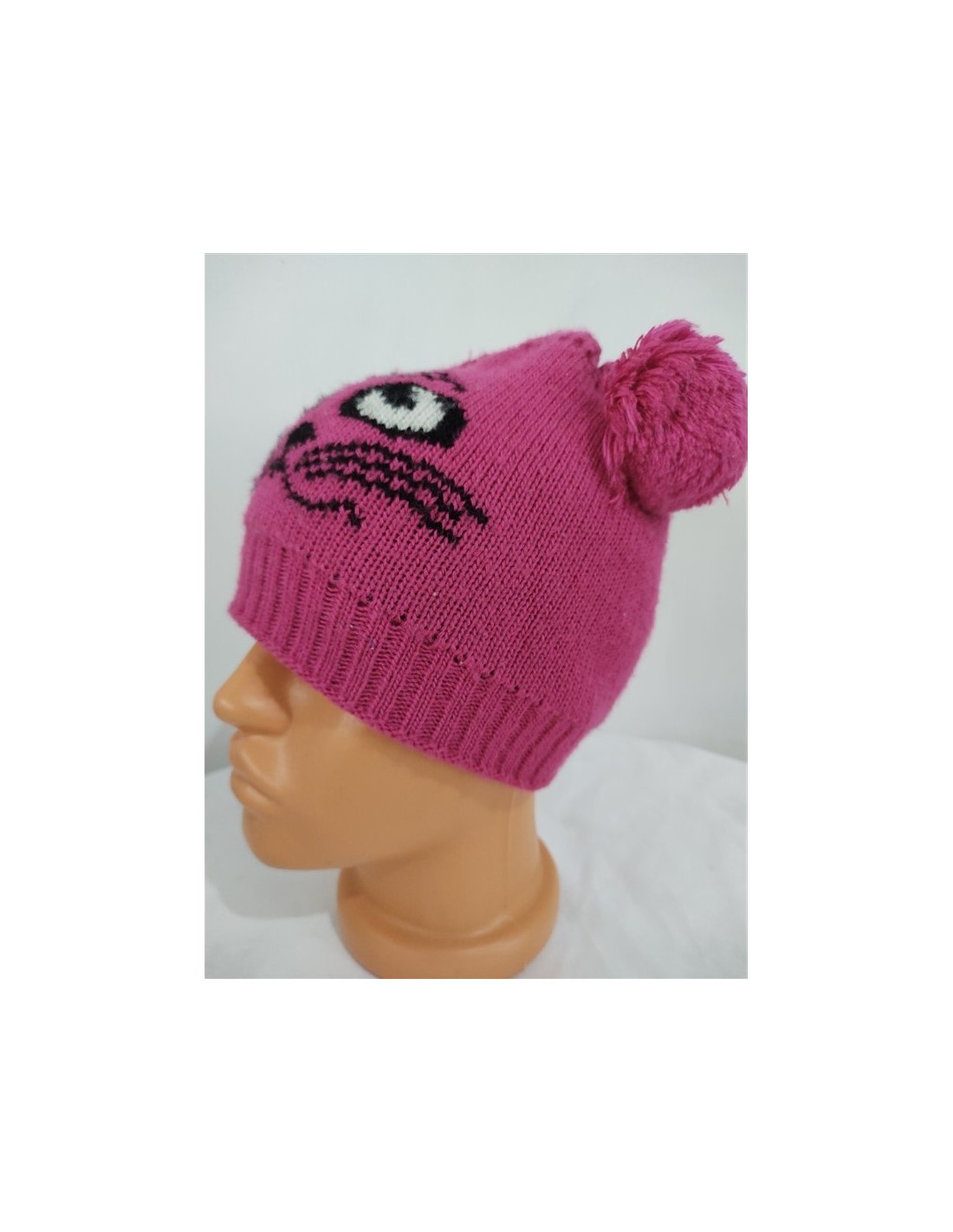 Caciula mov tricotata fin cu moate si imprimeu pisicuta potrivita pentru sezonul rece