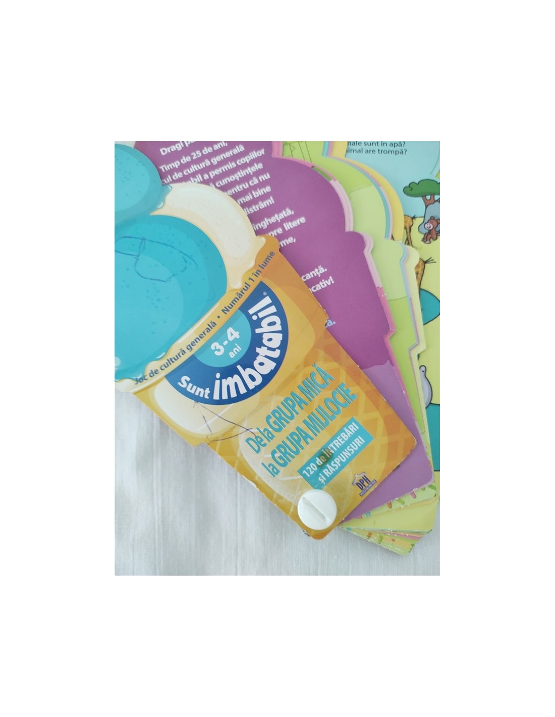 Joc de cultură generală care te va ajuta să fii pregătit pentru grupa mijlocie - 120 întrebări și răspunsuri ilustrate despre numere și litere, culori și forme, spațiu și timp, care te ajută să fii imbatabil.